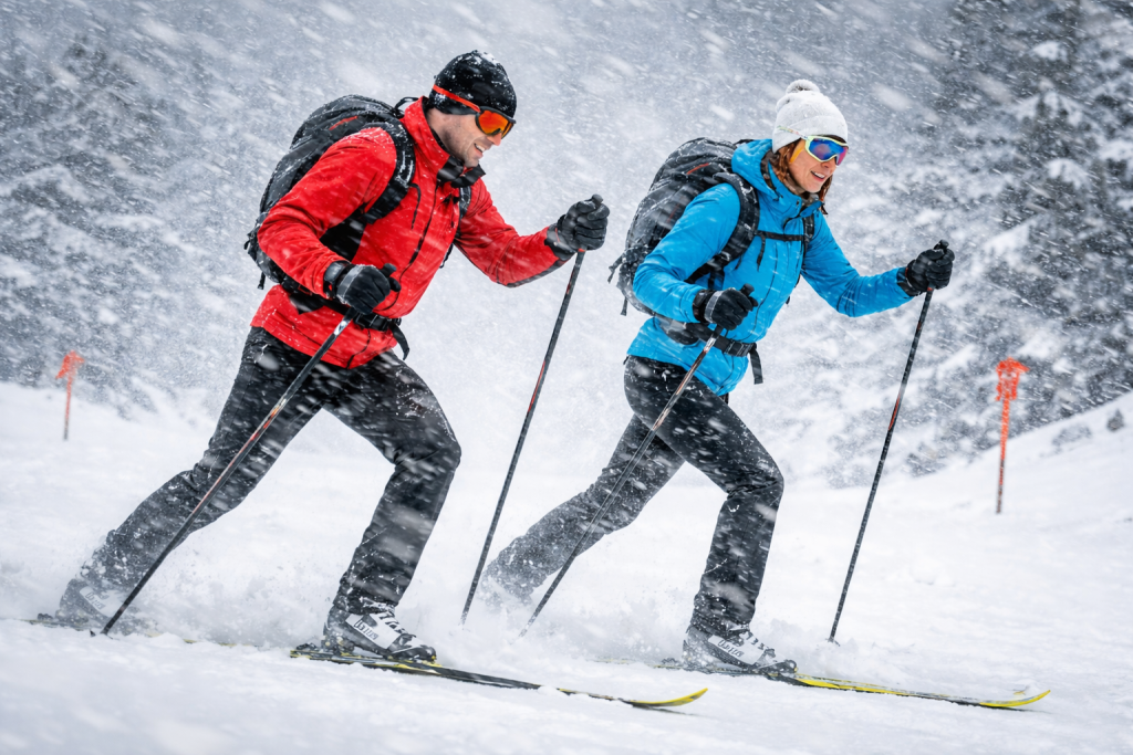 При обильном снегопаде трасса, как правило, мягкая. На такие условия лучше выбирать лыжи с более мягкими мысками — они лучше справляются с рыхлым снегом. Не берите самые жёсткие лыжи: они будут сильнее зарываться в снег.